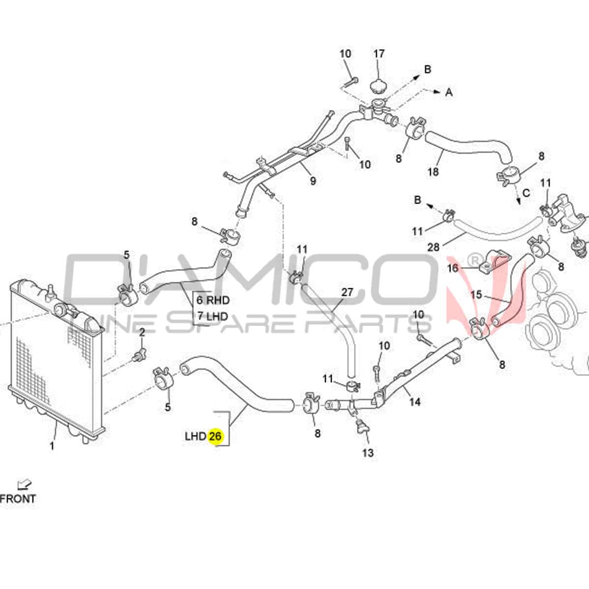 Radiator return hose compatible with Piaggio Porter. It returns the coolant from the radiator to the engine, maintaining the correct thermal cycle. Made with materials resistant to temperature and chemical agents.